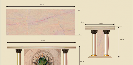 Od 16 maja 1918 r. przez cały miesiąc pracował Hukan nad kapitelami, zaś cztery miesiące potrzebował na ukończenie symboli czterech ewangelistów. Kapitele do marmurowych kolumn i plakiety ewangelistów miały być wykonane w brązie przez firmę Piotra Seipa na podstawie gipsowych modeli zrobionych przez Hukana, ale ostatecznie z racji finansowych skończyło się na gipsaturze poczernionej lub pobrązowionej, i one to zdobią do dzisiaj ołtarz. We wrześniu 1918 r. zaangażowano sztukatora Michała Rychlewicza do zrobienia odlewów gipsowych kapiteli. Prace przy nich trwały do lutego 1919 r. W ostatnim kwartale 1919 r. firma Franciszka Kopaczyńskiego wykonała miedziane bazy (opaski) do 16 marmurowych kolumn ołtarza. Zostały one odnowione w marcu 2021 r. z okazji przygotowywania świątyni do obchodu stulecia konsekracji.
